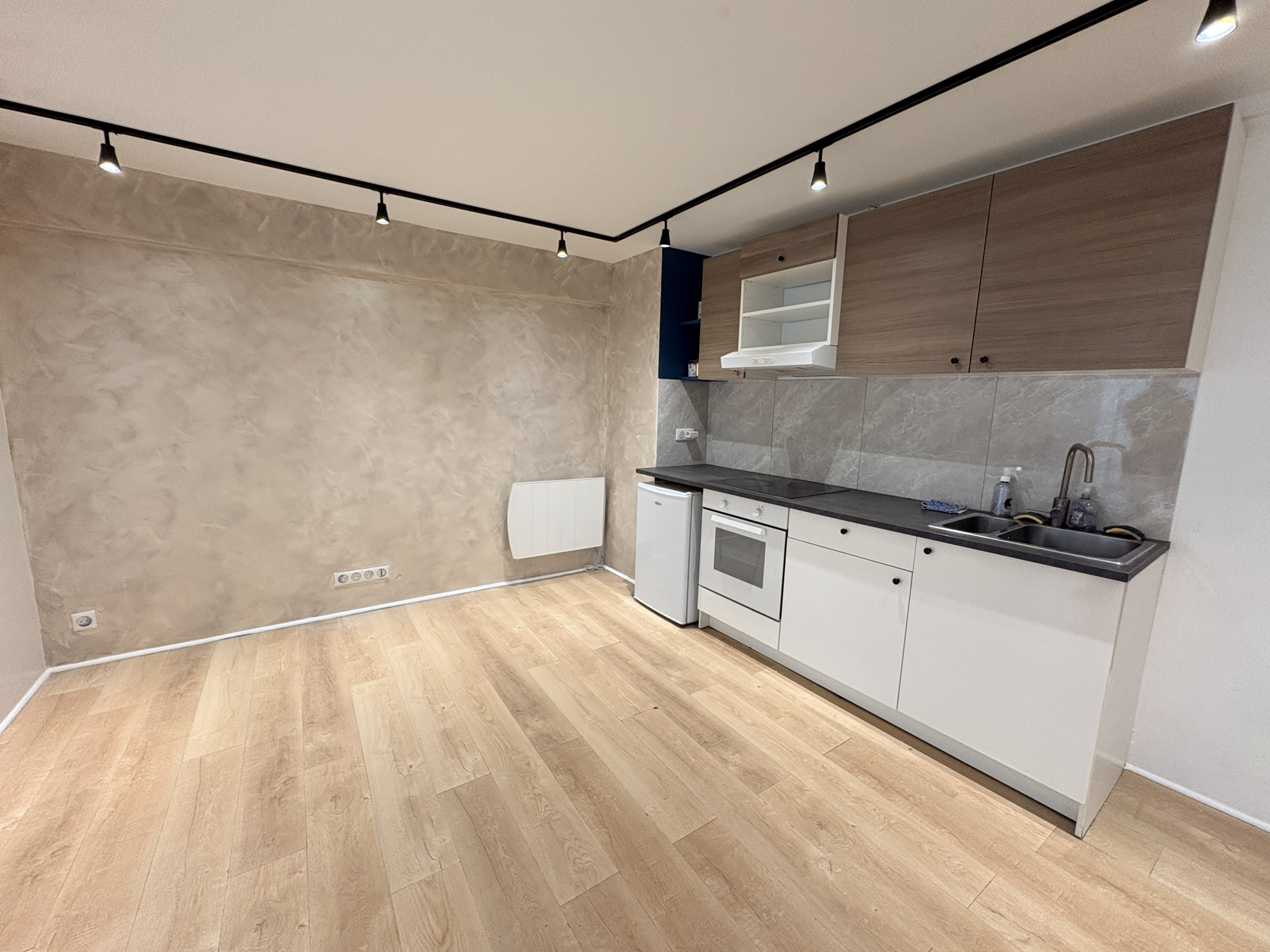 Le local se compose d’une pièce principale avec un espace cuisine aménagé et équipé, d’un espace ouvert séparé par une verrière apportant luminosité et cachet, ainsi que d’une salle d’eau avec douche et WC.